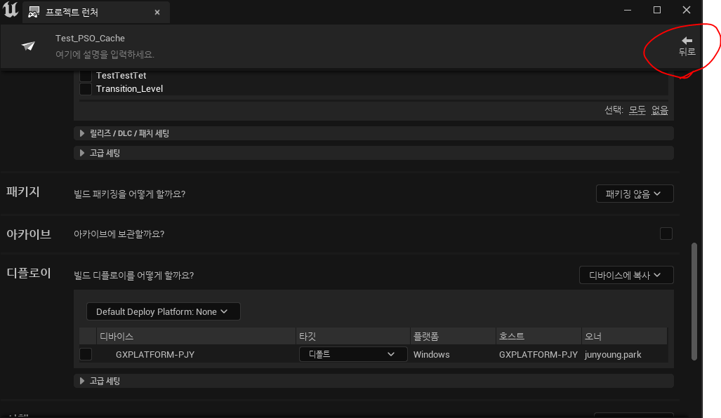 완료되면 지원하는 플랫폼 용으로 리빌드를 하면 생성된 PSO 캐시 데이터를 활용할 수 있는 프로젝트 버전이 완성된다.