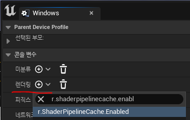 r.ShaderPipelineCache.Enabled - PSO 캐시 활성화