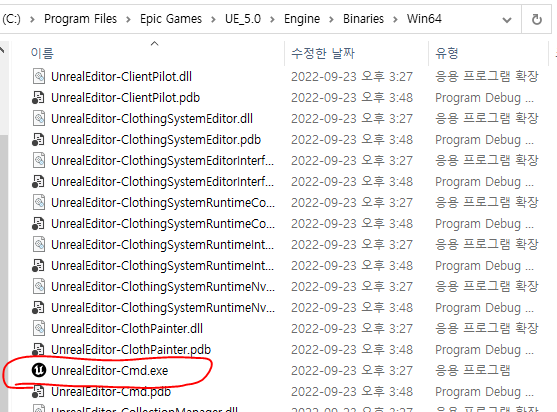 UnrealEditor-Cmd 실행 파일 경로