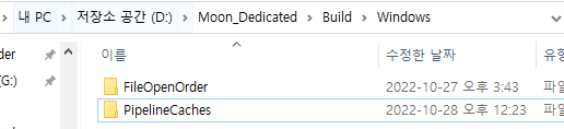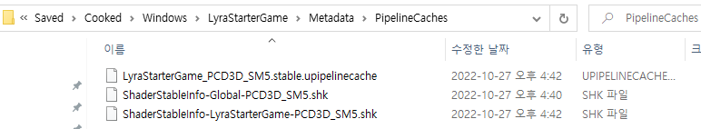 종료하면 CollectedPSOs 폴더안에 .rec.upipelinecache 가 생긴다.