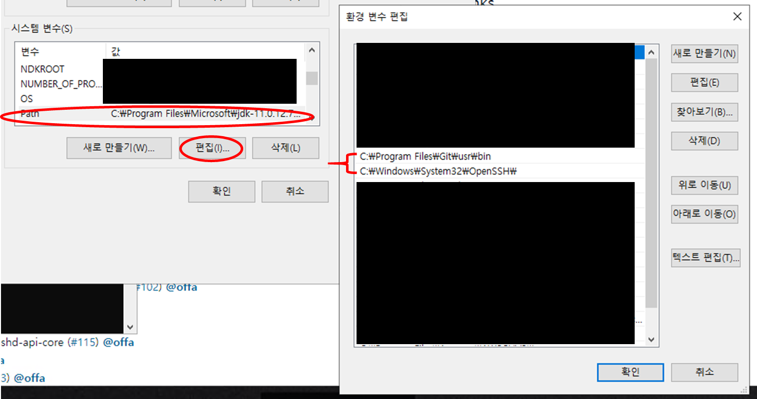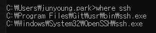 그리고 환경변수를 추가할 때 반드시 Git\usr\bin 이 OpenSSH 보다 위에 있어야 먼저 인식된다.