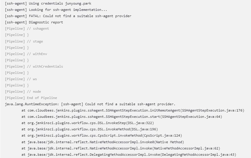 만약 해당 오류가 발생하면 플러그인이 아닌 다른 ssh-agent 를 사용하고 있는 것이다.