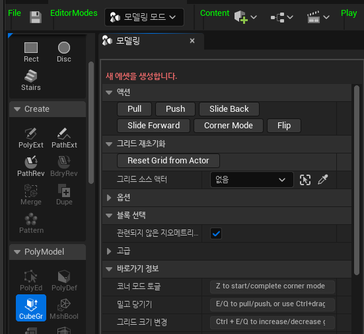 | EditorModeToolKit | 기본 UI Panel만 생성해주고 자세한 위젯은 Tools 폴더에 있는 active tool에서 생성 |