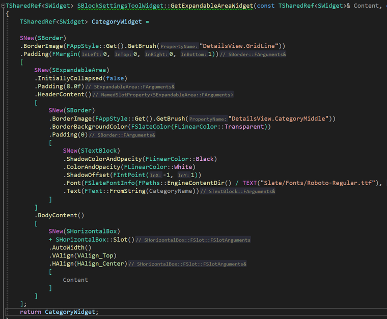| SImage | 보통 FEdtiorSlateStyle 에서 가져와서 사용한다. 커스텀 SlateStyle 만들어서 Set하여도 사용 가능 |